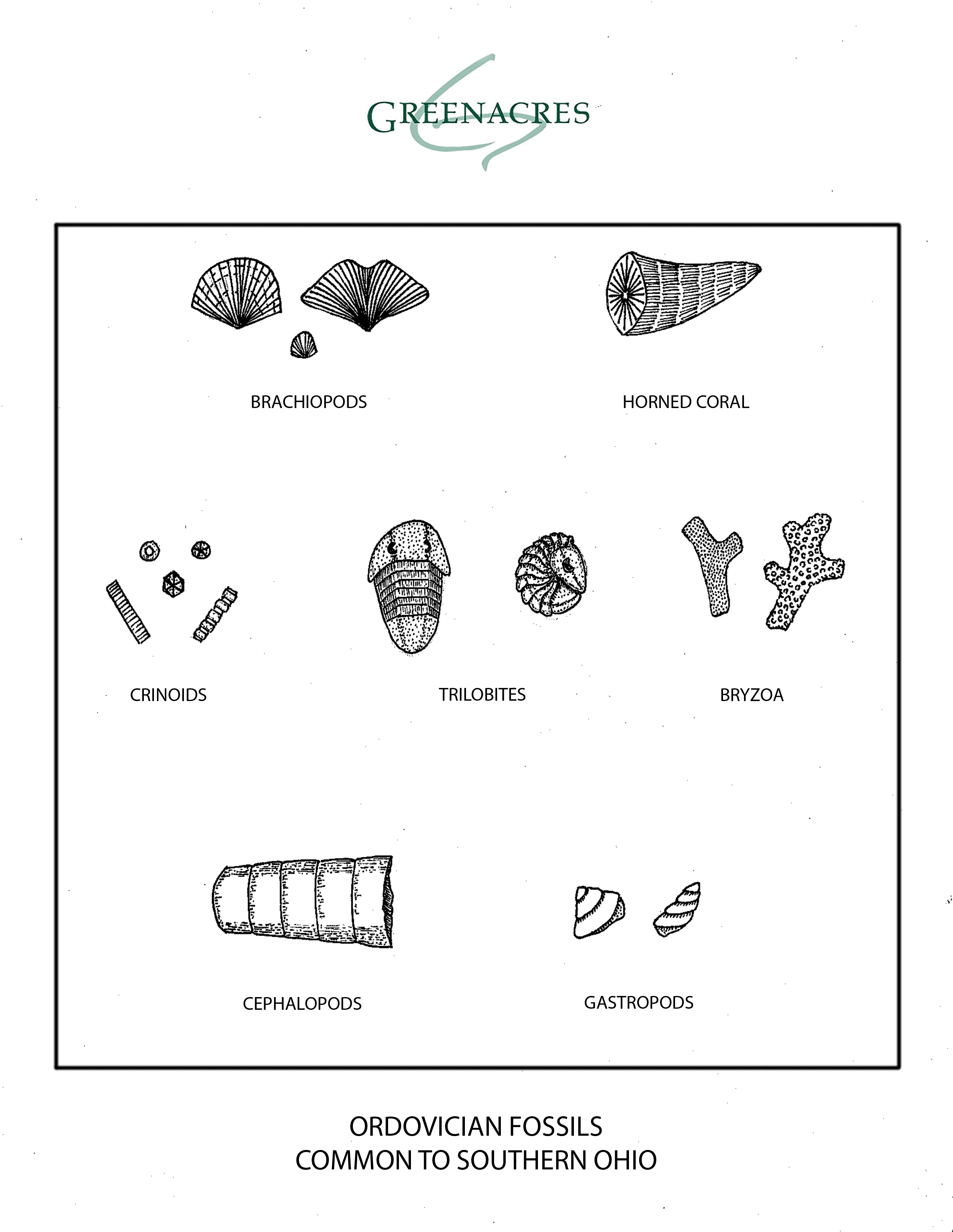 Take some time to explore and see if you can find a fossil treasure. Take time to think about what the animal may have looked like or how it may have moved and hunted for food. Challenge yourself to find the smallest individual fossil or try to find a rock with the most fossils embedded in it. Use our fossil guide to look for all the different types of fossils we have here in Ohio or try the Greenacres ‘Ordovician Sea Floor’ Coloring Page. Take time to learn what is under your feet as you explore the fossils of Ohio. Happy fossil hunting!