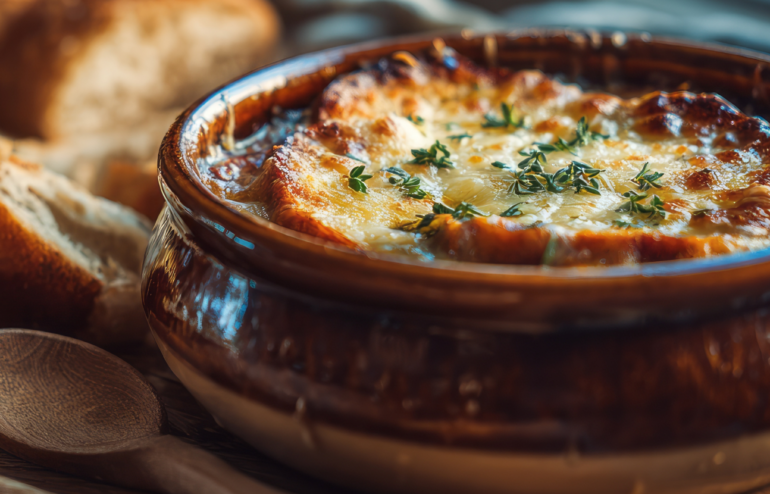 Sweet, slow-caramelized onions meet rich beef stock, red wine, and a touch of balsamic in this cozy French onion soup. Topped with toasted baguette slices and gooey melted gruyere, every spoonful is warm, savory, and satisfying. Perfect for chilly days or a comforting, hands-on meal everyone will love.