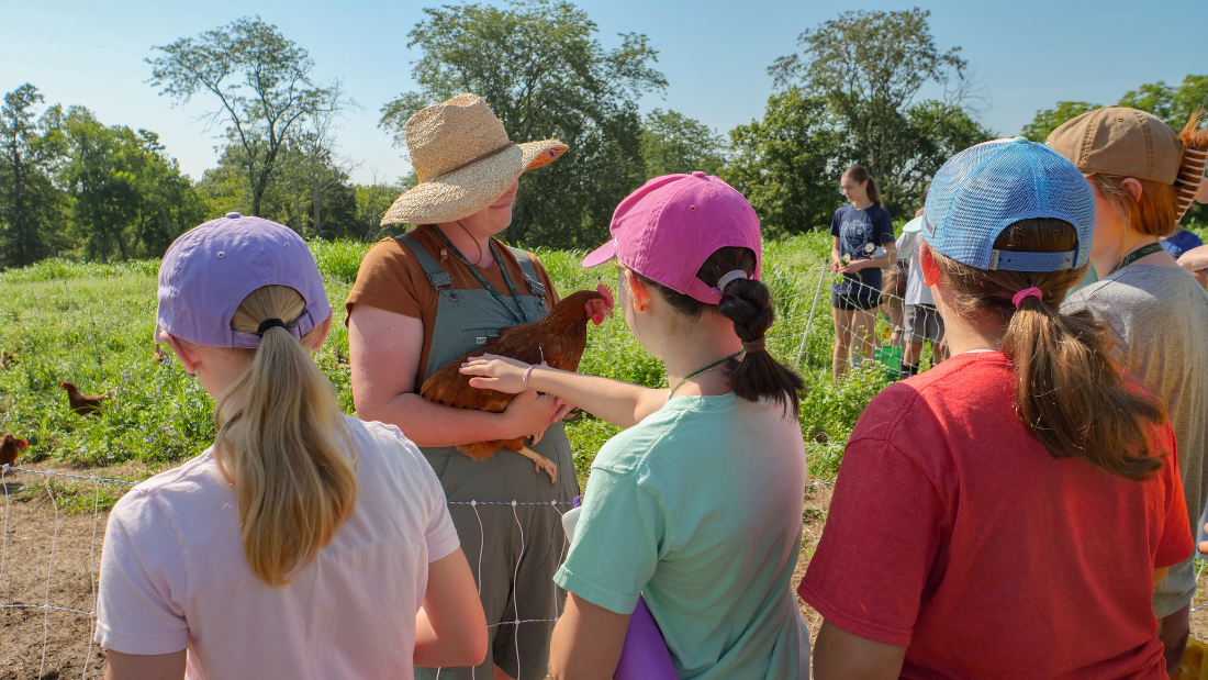 Our working farm offers immersive, hands-on learning experiences rooted in sustainable agriculture. From observing grass-fed cattle and pasture-raised poultry to harvesting from our vegetable and flower production gardens, students discover where their food comes from and how thoughtful land management supports healthy ecosystems and communities.