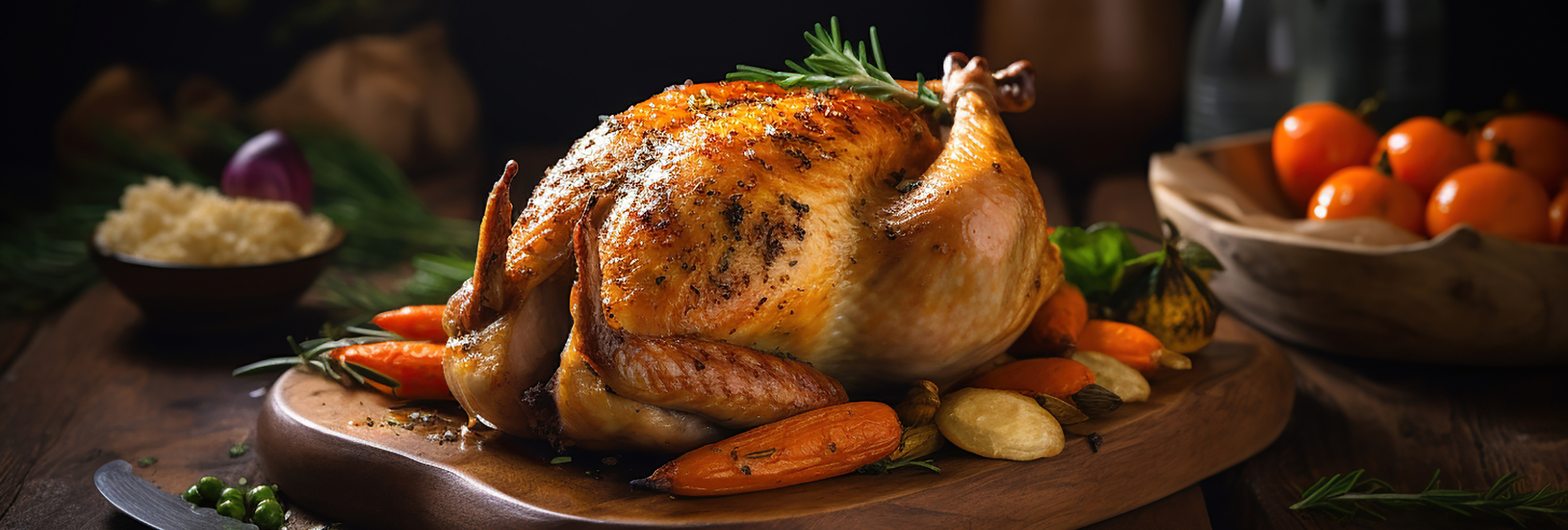 This guide walks beginners through roasting a whole Greenacres pasture-raised turkey with simple ingredients and basic tools. The process involves preparing a vegetable bed in the roasting pan, coating the turkey with an herb-garlic butter, and roasting at 325°F until the thigh reaches 160°F. The turkey is covered for most of the cook time and uncovered at the end for browning. After roasting, it rests for 30 minutes before carving, and the pan drippings can be used for gravy. The piece also highlights how Greenacres turkeys are raised—on rotated pasture, a diverse diet, and Certified Humane practices—contributing to their quality and flavor. Cooking times range from about 3 to 5 hours depending on the bird’s weight.